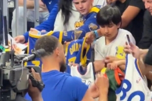 都不白来!库里赛前给球迷们签名 一群小学生翘首以盼