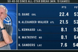 全明星赛后180俱乐部:贝恩&亚历山大-沃克领衔肯纳德&桑德斯在列
