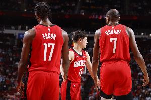首节,火箭全队25中10,三分9中0。